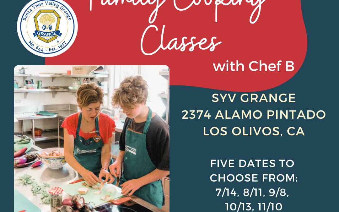 The SYV Grange is partnering with Apples to Zucchini Cooking School! Bring the family together in our kitchen and learn side-by-side to prepare delicious meals. Classes are tailored for children and teens with a family adult. Share your favorite food memories and traditions, build healthy relationships with food and cooking and let the kids show off all their emerging kitchen skills!